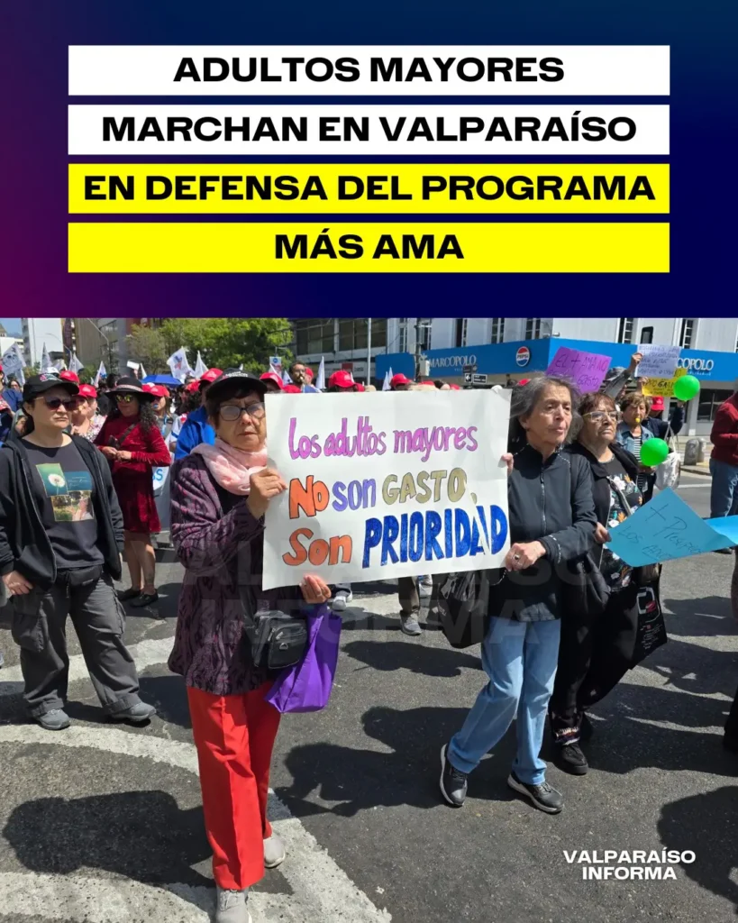 Por su parte la CONFUSAM, opinó hoy en Valparaíso: “Este miércoles, adultos mayores marcharon en el centro de Valparaíso en apoyo al Paro Nacional convocado por la CONFUSAM, quienes exigen la continuidad del programa “Más Adultos Mayores Autovalentes” (Más AMA).
