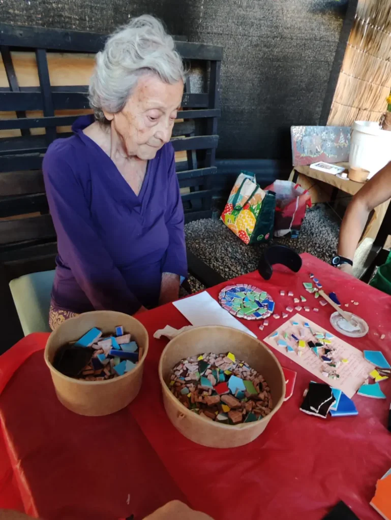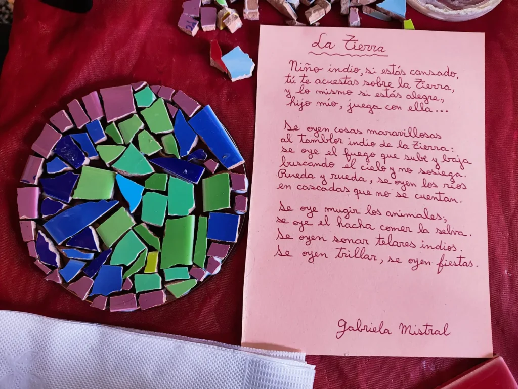 También se llevo a cabo la experiencia en la Biblioteca Municipal Nr. 037, donde, como en todas las otras actividades, cada persona escoje un poema, o algunas frases de un poema de Gabriela Mistral y a partir de ello, produce una composición con la técnica del mosaico.